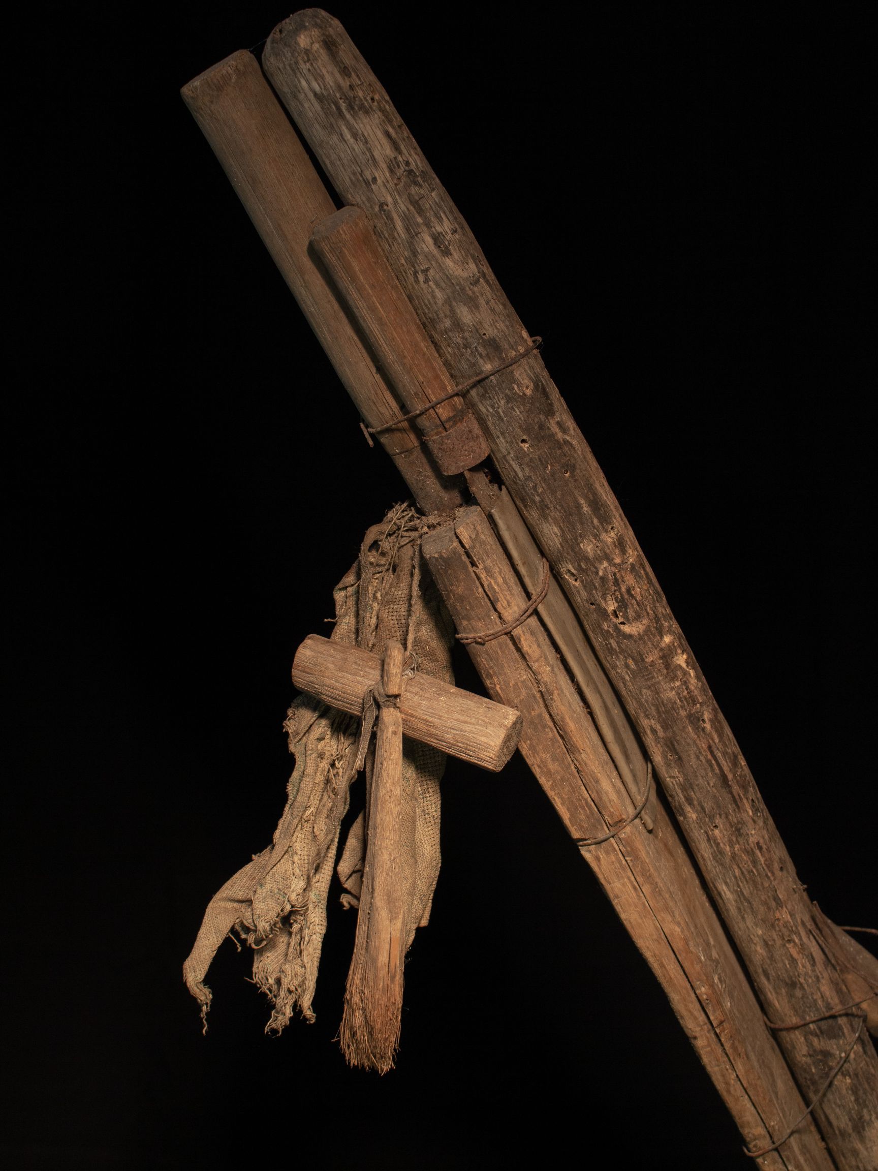 | คำอธิบาย : อุปกรณ์สำหรับเก็บน้ำตาล ประกอบไปด้วย ไม้นวดตาล มีดปาดตาล 2 ขนาด มีดเล็ก และมีใหญ่ แปลง ไม้นวดขนาดเล็ก ก่อนการเก็บน้ำตาลจากต้นตาล จะใช้ไม้นวดตาล นวดงวงตาลทิ้งไว้แล้วใช้มีดปาดตาล ปาดปลายช่อ แล้วใช้กระบอกไม้ไผ่สวมไว้ที่ปลายงวงตาลเพื่อให้น้ำตาล ๆ ค่อย ๆ ไหลลงไปในกระบอกไม้ไผ่ |