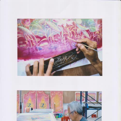 | คำสำคัญ : งานศิลป์, จิตรกรอาสา, จิตรกรรม, ฉากบังเพลิง, พระที่นั่งทรงธรรม |
