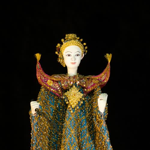 | คำอธิบาย : หุ่นสุดสาคร ใช้ในเรื่องพระอภัยมณี โดยหุ่นที่ใช้เป็นหุ่นตัวกุมาร ที่สามารถใช้ได้หลายเรื่อง |