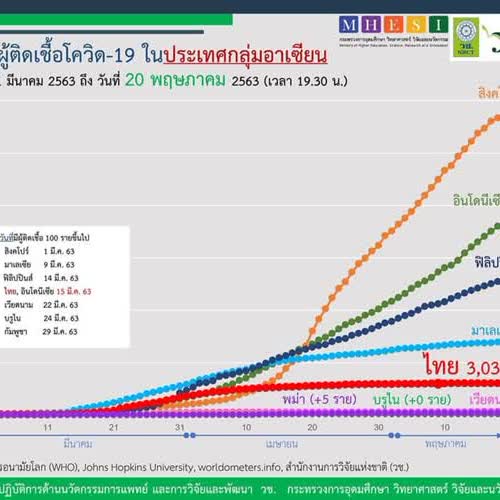 "สถานการณ์การติดเชื้อโควิด-19 ในอาเซียน ณ วันที่ 20 พฤษภาคม 2563 เวลา 19.30 น.".