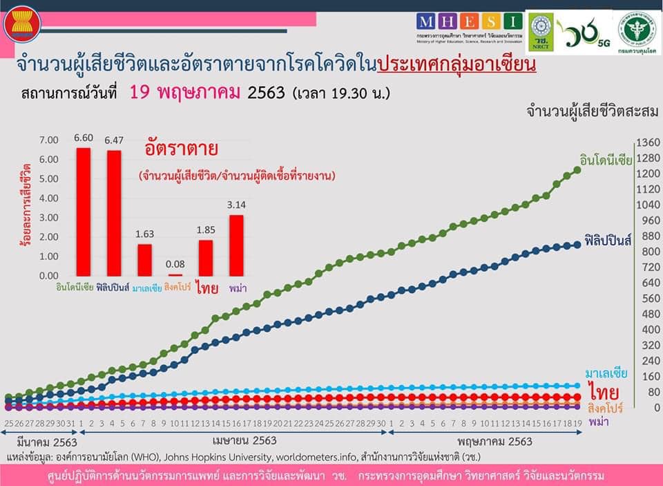 สถานการณ์การติดเชื้อโควิด-19 ในอาเซียน ณ วันที่ 19 พฤษภาคม 2563 เวลา 19.30 น.