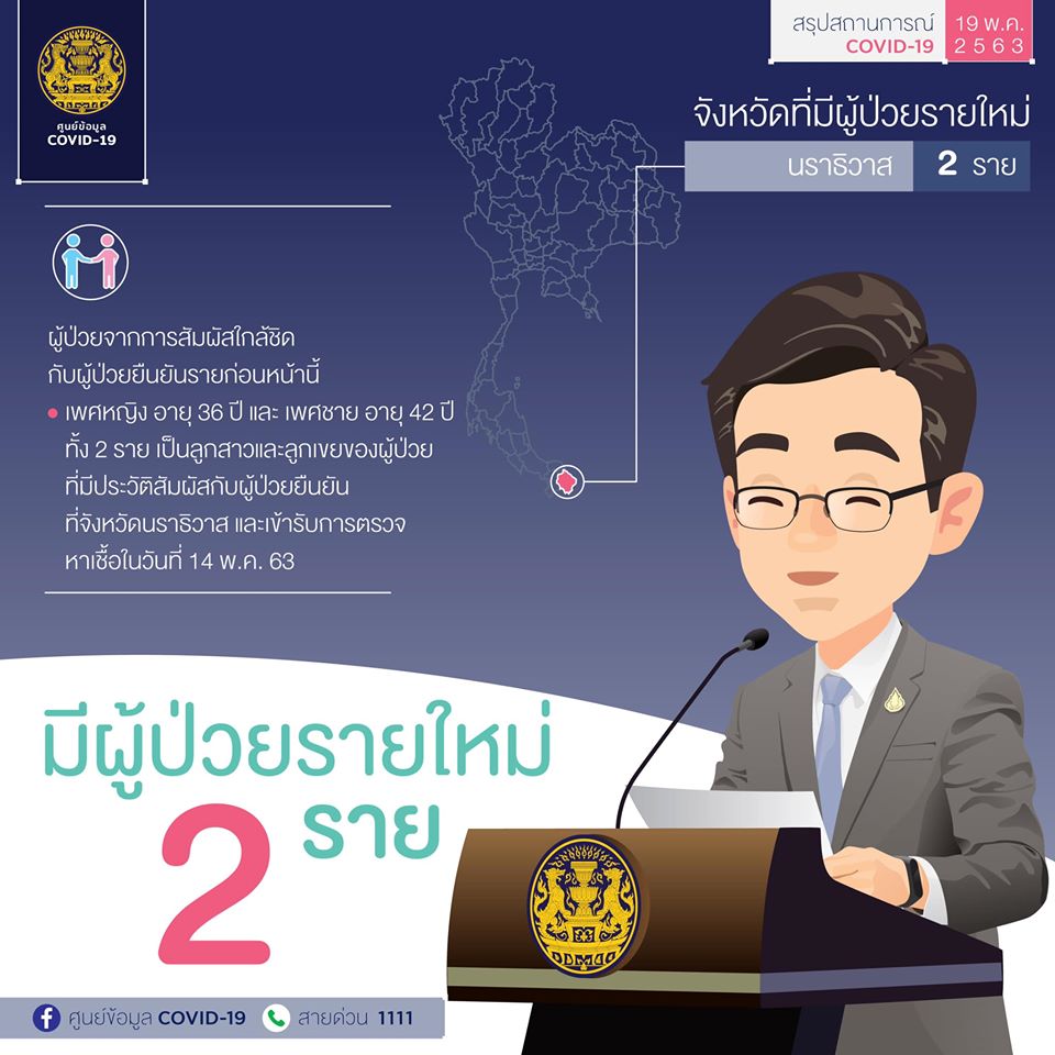(2563). "สรุปสถานการณ์ COVID-19 วันที่ 19 พ.ค. 2563".