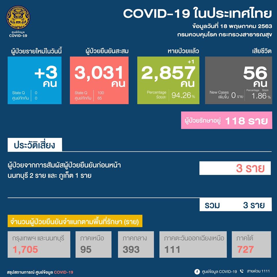 "COVID-19 ในประเทศไทย ข้อมูลวันที่ 18 พฤษภาคม 2563".