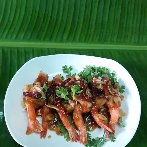 "เมนูกุ้งทอดซอสมะขาม".