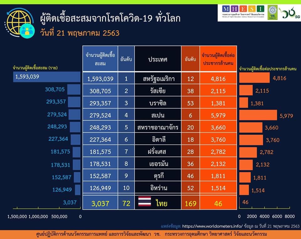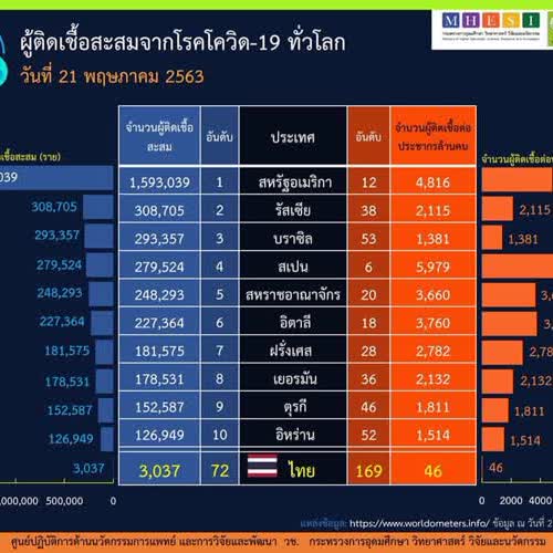 รีวิว : สถิติสำคัญเกี่ยวกับโรคโควิด-19 ในแต่ละประเทศทั่วโลก ข้อมูล ณ วันที่ 21 พฤษภาคม 2563