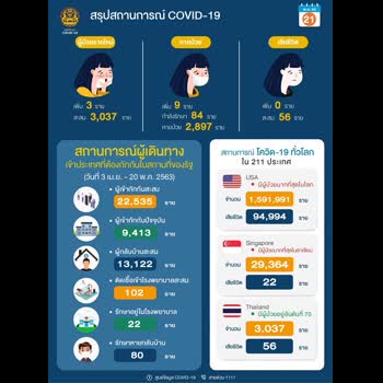 (2563). "สรุปสถานการณ์ COVID-19 วันที่ 21 พ.ค. 2563".
