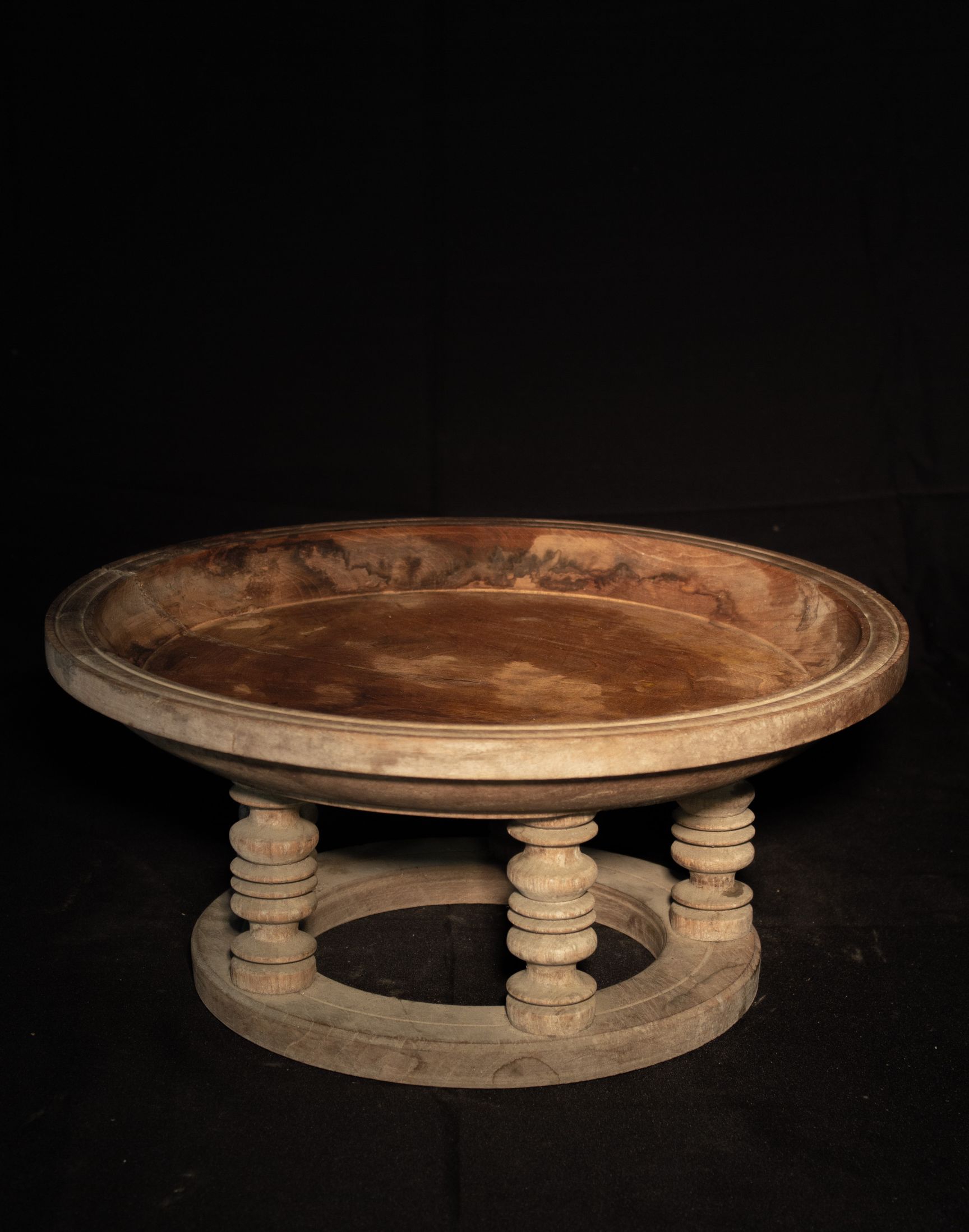 | คำอธิบาย : ขันโตก ทำจากไม้ ด้านบนเป็นไม้แผ่น ทำเป็นวงกลม ทำให้ลึกลงไปเล็กน้อยเพื่อให้สามารถวางของได้ ไม่ไหลตก ส่วนขา มี 5 ขา ขาติดอยู่กับไม้ที่ทำเป็นวงกลม ขากลึงให้สวยงาม เป็นกลม ๆ ใช้ใส่ถ้วยอาหาร เพื่อใช้สำหรับต้อนรับแขก |