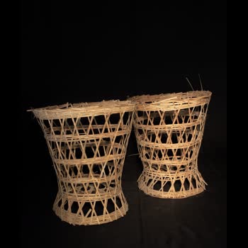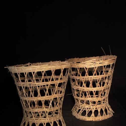 | คำอธิบาย : ก๋วยตี๋นจ๊าง ทำจากไม้ไผ่สาน สานห่าง ๆ ด้านบนยาวกว่าด้านล่างด้านล่างสามารถถอดออกได้ ลักษณะเหมือนเท้าช้าง ใช้ใส่เครื่องไทยทานไปถวายพระ |