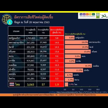 สถิติสำคัญเกี่ยวกับโรคโควิด-19 ในแต่ละประเทศทั่วโลก ข้อมูล ณ วันที่ 28 พฤษภาคม 2563 ได้รับใบอนุญาตภายใต้ ให้เผยแพร่-โดยต้องระบุที่มาแต่ห้ามดัดแปลงและห้ามใช้เพื่อการค้า 3.0 Thailand.