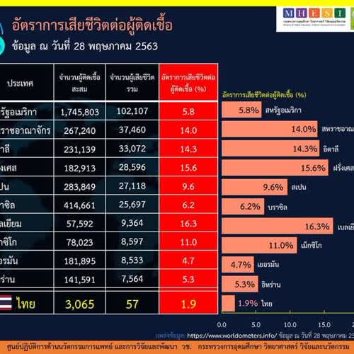 รีวิว : สถิติสำคัญเกี่ยวกับโรคโควิด-19 ในแต่ละประเทศทั่วโลก ข้อมูล ณ วันที่ 28 พฤษภาคม 2563