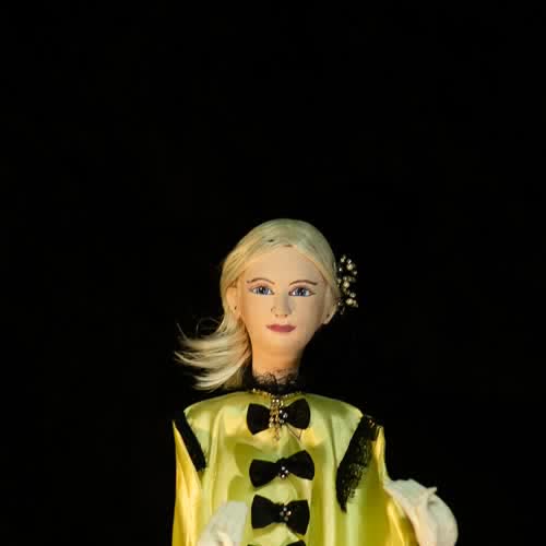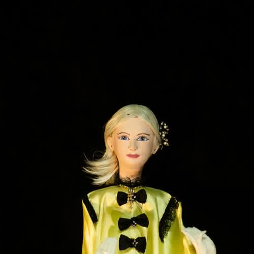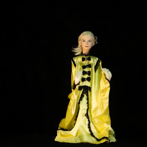 | คำอธิบาย : หุ่นยุพาผกา ลูกเลี้ยงของละเวง เป็นหุ่นเฉพาะเรื่อง ใช้ในเรื่องพระอภัยมณี |