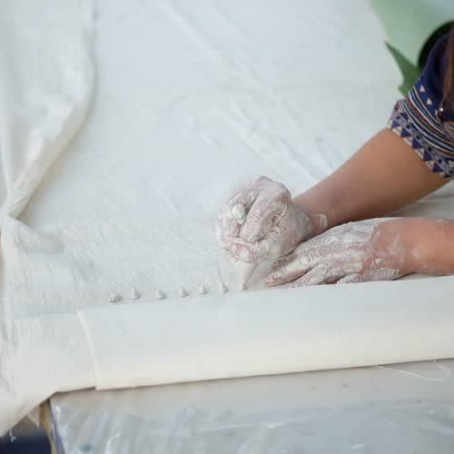 "การสาธิตทำแป้งร่ำ".