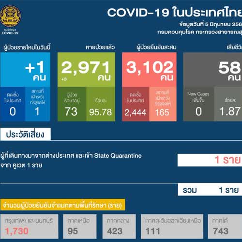 COVID-19 ในประเทศไทย ข้อมูลวันที่ 5 มิถุนายน 2563