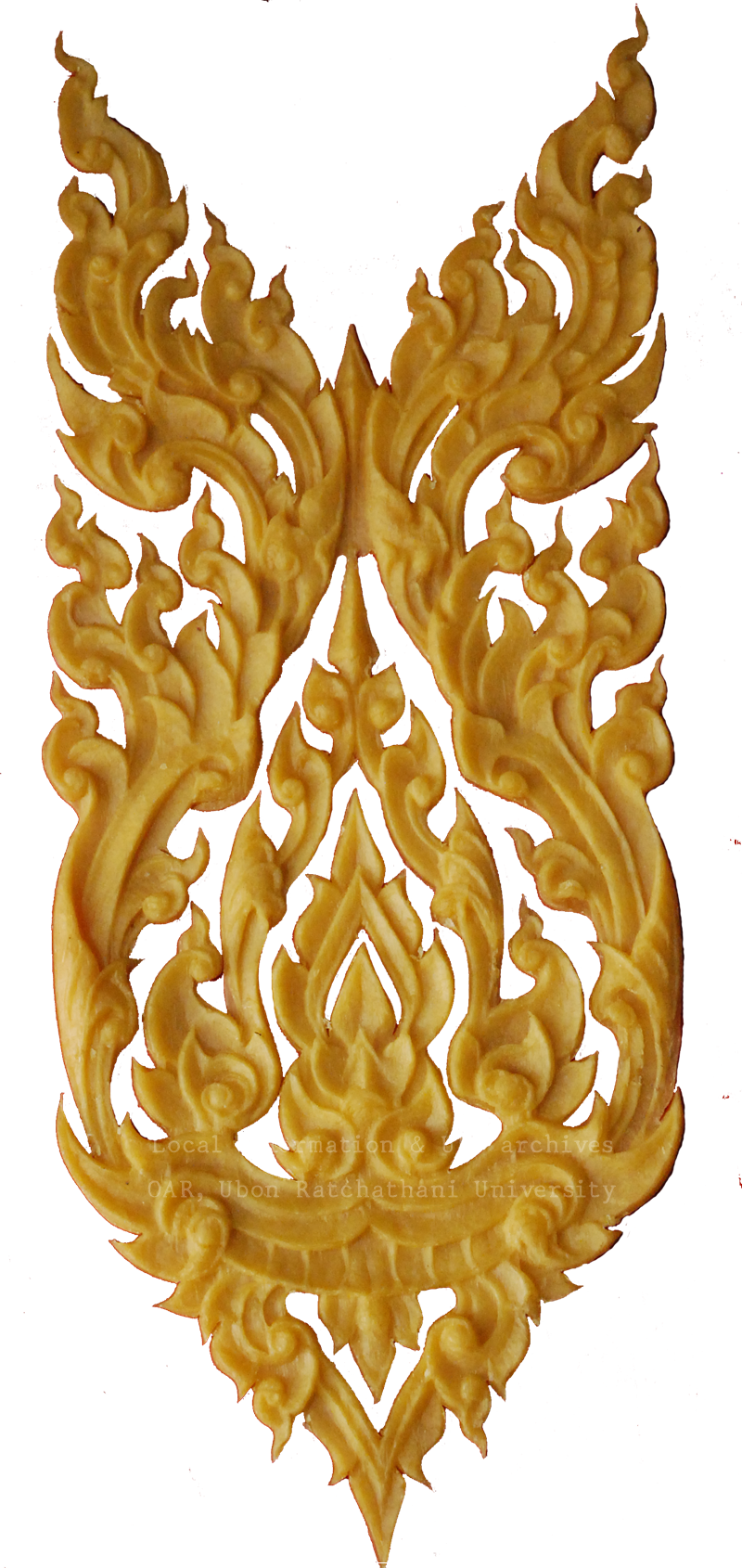 | คำอธิบาย : ลายช่อหน้าสิงห์ ลายเทียนพรรษาประเภทติดพิมพ์ ลวดลายที่ใช้ประดับตกแต่งขบวนเทียนพรรษาในงานประเพณีแห่เทียนพรรษาของจังหวัดอุบลราชธานี |