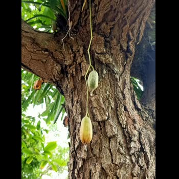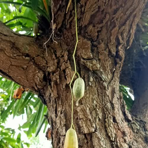 | คำอธิบาย : กะเรกะร่อน เป็นชื่อของกล้วยไม้ชนิดหนึ่งขึ้นอยู่ตามต้นตาลโตนด (บางแห่งจะขึ้นบนต้นทุเรียน หรือต้นไม้อื่นๆ) ใบเขียวหนา ต้นกะเรกะร่อนที่มีความอุดมสมบูรณ์ใบจะมีความยาวประมาณ 60 ซม. มีดอกเป็นช่อยาวราวขนาดของใบ เมื่อดอกร่วงมันจะกลายเป็นลูก(ผล)ดังภาพที่เป็น ซึ่งบางครั้งจะหาดูได้ยากเหมือนกัน แถวๆบ้านฉัน ถ้าใครเรียกกล้วยไม้ชนิดนี้ว่า กะเรกะร่อน จะมีคนไม่รู้จักกันหลายคน เพราะเค้าจะเรียกมันว่า ต้นกล้วยผี |
