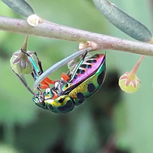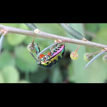 | คำอธิบาย : มวนตองแตก หรือ มวนลิ้นจี่ (ชื่อท้องถิ่น) ชื่อทางวิทยาศาสตร์เรียกว่า Chrysocoris stollii Wolff เป็นสัตว์ที่มีสีสันสวยงาม แต่ก็เป็นศัตรูตัวฉกาจของพืช เพราะเจ้ามวนตองแตกนี้จะ "ดูดกินน้ำเลี้ยงจากพืช" จนสร้างความเสียหายได้ |