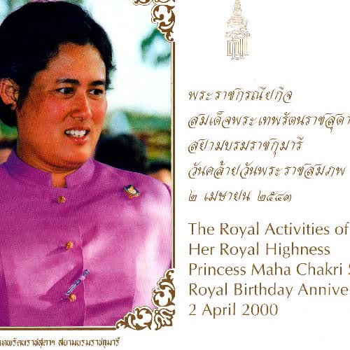(2563). "แผ่นพับพระราชกรณียกิจสมเด็จพระเทพรัตนราชสุดาฯ สยามบรมราชกุมารี วันคล้ายวันพระราชสมภพ ๒ เมษายน ๒๕๔๓".