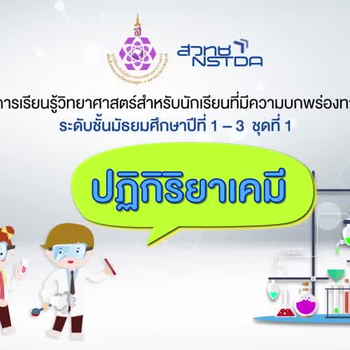 | คำอธิบาย : คำอธิบายบทเรียนการศึกษาเรื่องปฏิกิริยาเคมีจากคลิปวีดีโอสาธิตการสอนสำหรับนักเรียนที่บกพร่องทางการมองเห็น ประกอบด้วยกิจกรรมสาธิตการทดลองและสรุปผลการทดลอง ช่วยให้ครูผู้สอนและนักเรียนได้ศึกษาเรียนรู้การเปลี่ยนแปลงที่ทำให้เกิดปฏิกิริยาเคมีตามตัวอย่าง ครูผู้สอนสามารถนำไปใช้สอนหรือนำไปใช้เป็นแนวทางในการจัดการเรียนการสอนหรือทำการทดลองให้แก่นักเรียนที่บกพร่องทางการมองเห็นและใช้อธิบายเพิ่มเติมจากในบทเรียน อีกทั้งยังเป็นประโยชน์ให้นักเรียนได้ทบทวนซ้ำในหลาย ๆ ครั้งจนเกิดความเข้าใจ เนื้อหาการเกิดปฏิกิริยาเคมี คือ กระบวนการเปลี่ยนแปลงที่ทำให้เกิดสารใหม่ซึ่งมีคุณสมบัติเปลี่ยนไปจากสารเดิม สารเริ่มต้นที่เข้าทำปฏิกิริยากันเรียกว่า “สารตั้งต้น(reactant)” เมื่อเกิดการเปลี่ยนแปลงทางเคมีทำให้เกิดเป็นสารใหม่เรียกว่า “สารผลิตภัณฑ์(product)” การเขียนปฏิกิริยาเคมี ใช้ลูกศรคั่นกลางระหว่างสารตั้งต้นและสารผลิตภัณฑ์ ดังนี้ สารตั้งต้น-->สารผลิตภัณฑ์จุดประสงค์รายวิชาเพื่อให้ผู้เรียนสามารถ1. อธิบายความหมายของการเกิดปฏิกิริยาเคมี2. ยกตัวอย่างการเกิดปฏิกิริยาเคมีในชีวิตประจำวันได้กลุ่มเป้าหมายนักเรียนที่มีความบกพร่องทางการเห็น นักเรียนพิการกลุ่มอื่นที่สนใจ นักเรียนทั่วไป ครูวิทยาศาสตร์ ครูการศึกษาพิเศษ บุคลากรทางการศึกษา หรือกลุ่มคนที่สนใจทั่วไป |