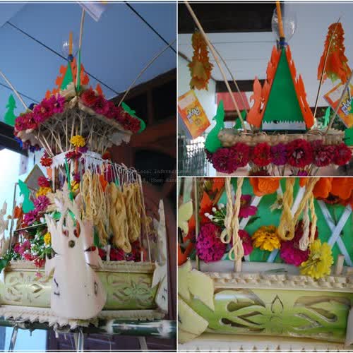 คำอธิบาย : รูปแบบของปราสาทผึ้ง บ้านทุ่งใหญ่ อำเภอเขื่องใน จังหวัดอุบลราชธานี ที่ใช้ในประเพณีแห่ปราสาทผึ้ง ในช่วงวันออกพรรษา เพื่อเป็นพุทธบูชา อุทิศส่วนกุศล หรือสะเดาะเคราะห์ เป็นประเพณีท้องถิ่นที่สืบทอดกันมานาน |