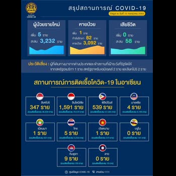 คำสำคัญ : ไวรัสโคโรนา, COVID-19, ศูนย์ข้อมูล COVID-19, COVID19, โควิด-19, สรุปสถานการณ์ COVID-19 |