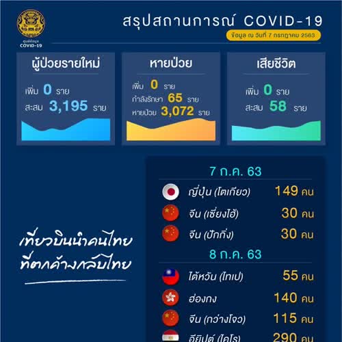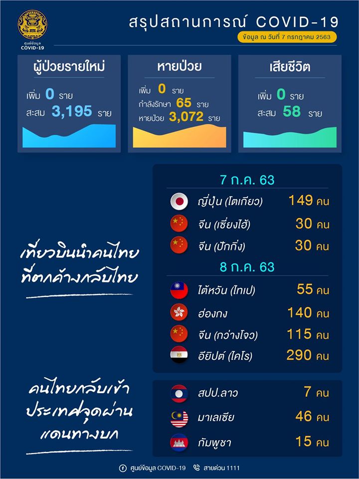 "สรุปสถานการณ์ COVID-19 ข้อมูล ณ วันที่ 7 กรกฎาคม 2563".
