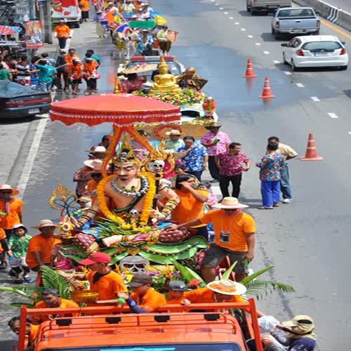 คำอธิบาย : ประเพณีแห่พญายม เป็นประเพณีเก่าแก่ของตำบลบางพระ ซึ่งเป็นหนึ่งในหลายตำบลของอำเภอศรีราชา มีการปฏิบัติโดยการสร้างหุ่นพญายม และแห่ไปลอยทะเลในเวลาโพล้เพล้ โดยมีความเชื่อถือว่าพญายมจะนำโรคภัยไข้เจ็บและเคราะห์ร้ายต่าง ๆ ไปด้วย จากการปฏิบัติสืบต่อกันมาเป็นระยะเวลานานหลายหน่วยงานเริ่มเห็นความสำคัญของการแห่พญายมและเข้ามามีส่วนร่วมในกิจกรรม ซึ่งเทศบาลตำบลบางพระเห็นความสำคัญของประเพณีแห่พญายมนี้ เนื่องจากเห็นว่าประเพณีแห่พญายมเป็นเอกลักษณ์ของชาวบางพระ มีจุดเด่นที่เป็นประเพณีที่ก่อให้เกิดการรวมพลังและรวมจิตใจของชุมชนอย่างแท้จริง เช่นเดียวกันกับประเพณีกองข้าวของศรีราชา เป็นเสมือนวัฒนธรรมพื้นบ้านที่สืบต่อกันมาเป็นเวลานาน ดังนั้นในวันไหลสุดท้ายขิงตรุษสงกรานต์ (ซึ่งถือเป็นวันปีใหม่ของไทย) ชาวบ้านจะพากันแห่พญายมที่ทำง่าย ๆ จากโครงไม้ไผ่ฟางข้าว และกระดาษแต่งแต้มด้วยดินสอพองหรือดินหม้อให้แลดูเป็นองค์ปัจจุบันมีวิธีการประณีต ทำรูปพญายมอย่างงดงาม นำไปปล่อยในทะเลลึกเป็นอันเสร็จพิธี |