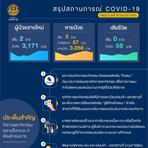 สรุปสถานการณ์ COVID-19 ข้อมูล ณ วันที่ 30 มิถุนายน 2563