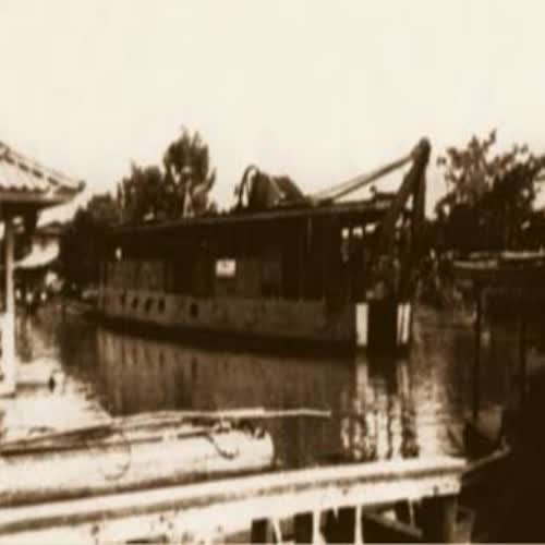 | คำอธิบาย : เรือขุดของกรมชลประทาน กำลังขุดลอกคลองพระราชาพิมลบริเวณศาลาท่าน้ำ หน้าสำนักงานเทศบาลเมืองบางบัวทองหลังเก่า |