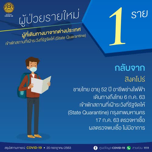 สรุปสถานการณ์ COVID-19 วันที่ 20 กรกฎาคม 2563