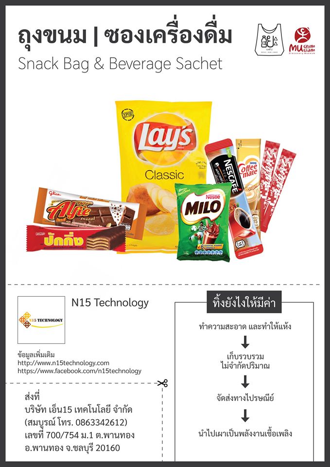 (2563). "Infographic การจัดการขยะประเภทถุงขนม/ ซองเครื่องดื่ม".