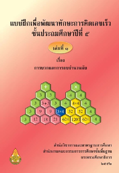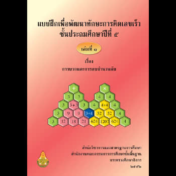 | ชื่อเรื่อง : แบบฝึกเพื่อพัฒนาทักษะการคิดเลขเร็ว ชั้นประถมศึกษาปีที่ 5 เล่ม 1 |