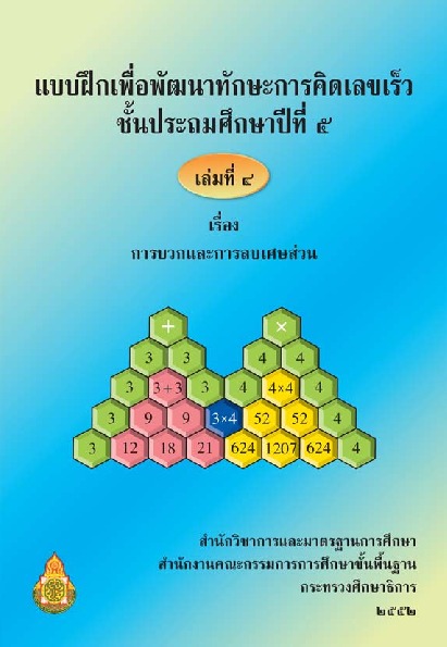 | ชื่อเรื่อง : แบบฝึกเพื่อพัฒนาทักษะการคิดเลขเร็ว ชั้นประถมศึกษาปีที่ 5 เล่ม 4 |