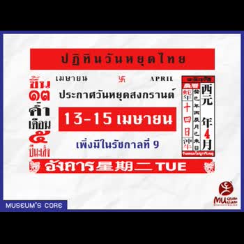 | ชื่อเรื่อง : ประกาศวันหยุดสงกรานต์ 13-15 เมษายน เพิ่งมีในรัชกาลที่ 9 |