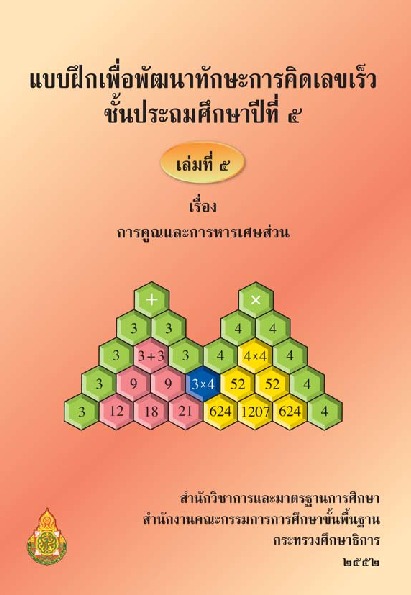 | ชื่อเรื่อง : แบบฝึกเพื่อพัฒนาทักษะการคิดเลขเร็ว ชั้นประถมศึกษาปีที่ 5 เล่ม 5 |