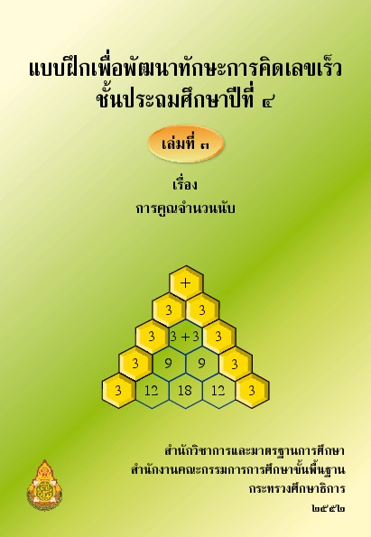 | ชื่อเรื่อง : แบบฝึกเพื่อพัฒนาทักษะการคิดเลขเร็ว ชั้นประถมศึกษาปีที่ 4 เล่ม 3 |
