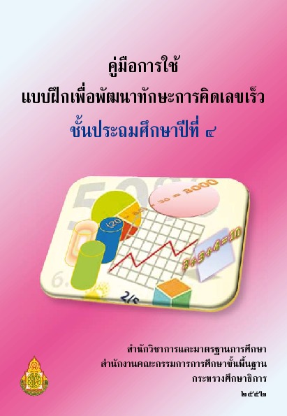 | ชื่อเรื่อง : คู่มือการใช้แบบฝึกเพื่อพัฒนาทักษะการคิดเลขเร็ว ชั้นประถมศึกษาปีที่ 4 |