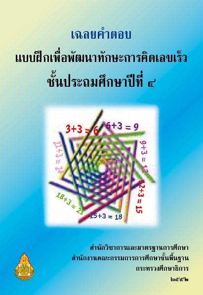 | ชื่อเรื่อง : เฉลยคำตอบแบบฝึกเพื่อพัฒนาทักษะการคิดเลขเร็ว ชั้นประถมศึกษาปีที่ 4 |