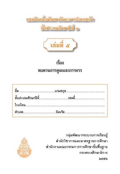 แบบฝึกเพื่อพัฒนาทักษะการคิดเลขเร็ว ชั้นประถมศึกษาปีที่ 3 เล่ม 5