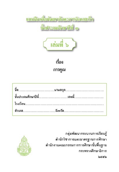 "แบบฝึกเพื่อพัฒนาทักษะการคิดเลขเร็ว ชั้นประถมศึกษาปีที่ 3 เล่ม 6".