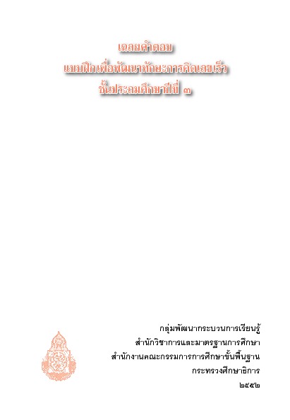 | ชื่อเรื่อง : เฉลยคำตอบแบบฝึกเพื่อพัฒนาทักษะการคิดเลขเร็ว ชั้นประถมศึกษาปีที่ 3 |