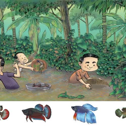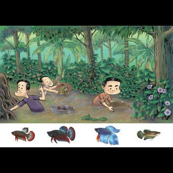 | คำสำคัญ : ปลากัด, ห้องครัว, วิถีชาวบ้าน, วิถีชีวิต, ภาพวาด, งานศิลปะ, บ้านสวน |