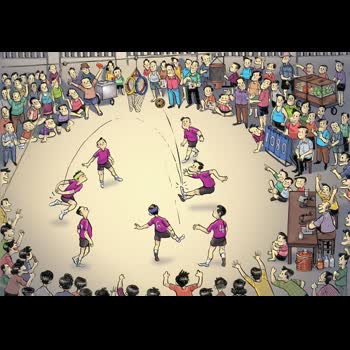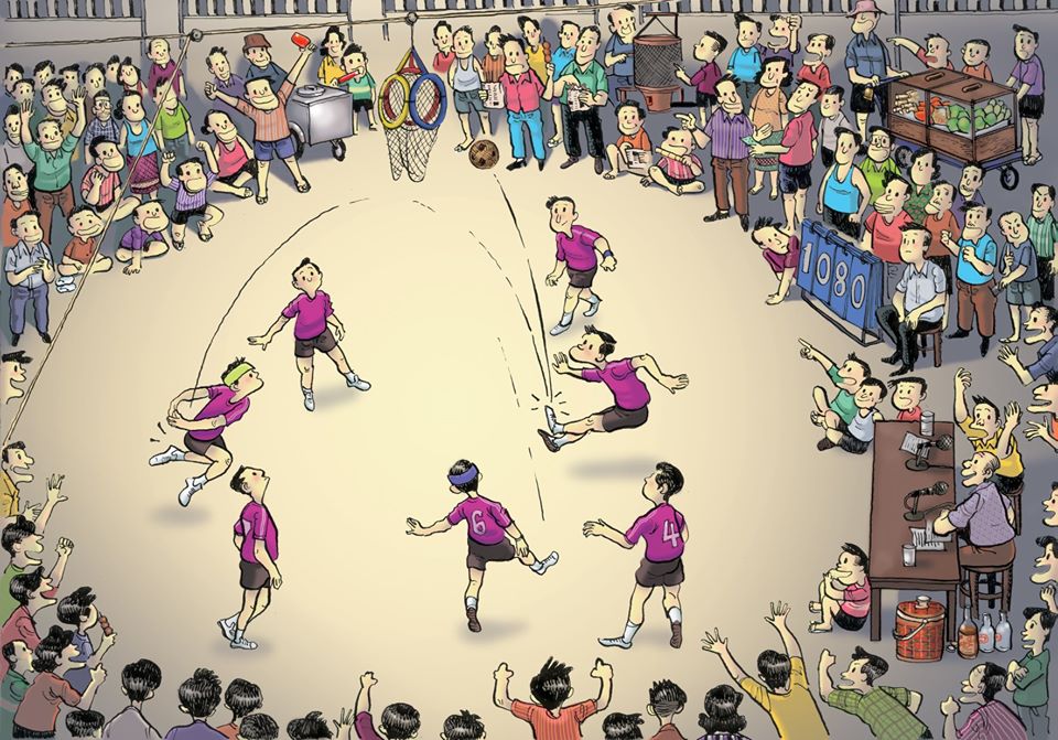 คำอธิบาย : #งานวัดตอนที่สอง #ตะกร้อลอดห่วง #เด็กบ้านสวน #คนไทยสู้ๆช่วงนี้มีแต่ข่าวน่าหวาดวิตก ทั้งไข้หวัดโควิด19 ทั้งข่าวเศรษฐกิจของบ้านเราและทั้งโลก หวังว่าทุกท่านจะดำเนินชีวิตประจำวันด้วยความไม่ประมาท และมีสติ นะครับ ผมเชื่อว่าไม่ว่าเรื่องร้ายแรงแค่ไหนมันก็ต้องมีวันจบตามหลักอนิจจัง ซึ่งเป็นธรรมชาติของทุกสิ่งนะครับ และเราทุกคนจะผ่านมันไปด้วยกันอย่างแน่นอนฮะผมขอเล่าเรื่องงานวัดเขมาภิรตารามสมัยนั้นต่อจากตอนที่แล้ว หวังเป็นเครื่องเบาสมองคลายกังวลให้ท่านผู้อ่านได้ไม่มากก็น้อยนะฮะก่อนเข้างานวัดทุกครั้ง ผู้คนโดยเฉพาะผู้ชายตั้งแต่เด็กๆไปจนถึงผู้เฒ่าทั้งหลาย มักจะตรงดิ่งไปที่ลานหน้าอาคารโรงเรียนวัดเขมาฯก่อน เพื่อดูกีฬาตะกร้อลอดห่วงกัน ที่นี่ถือเป็นหนึ่งในสนามใหญ่ของกีฬาตะกร้อลอดห่วง ก่อนที่จะมาจบสนามสุดท้ายที่งานกีฬาพื้นบ้านไทยที่สนามหลวงทุกหน้าร้อนกันนะครับตะกร้อลอดห่วงเป็นกีฬาไทยที่เต็มไปด้วยศิลปะและความบันเทิงของชาวบ้านในยุคนั้นอย่างมากทีเดียวครับ เรามักใช้เป็นการอุ่นเครื่องก่อนเข้าไปเที่ยวดูความบันเทิงอื่นๆในงานวัดกันต่อไปคณะนึงจะมีอยู่ 6-7 คน ผลัดกันชงกันเตะลูกหวายให้เข้าไปในห่วงที่แขวนอยู่ โดยแต่ละท่าจะมีคะแนนกำกับไว้ตั้งแต่ ท่าง่ายอย่างลูกโหม่งหรือลูกไหล่ 10 คะแนนไปจนถึงลูกกระโดดพับหลังตบบ่วงมือที่เป็นท่ายาก 50 คะแนน อย่างในภาพคนทางซ้ายกำลังใช้ท่าลูกข้างบ่วงมือ ( ท่านี้รู้สึกจะ 15 คะแนน ) ขณะที่ผู้เล่นทางขวาใช้ท่าลูกไขว้หน้าด้วยหลังเท้า ( 30 คะแนน ) น่ะฮะแต่ละคณะจะใช้เวลา 40 นาทีไล่เก็บคะแนนกันไป ลีลาการเตะสมัยนั้นต้องเรียกว่า แม่นฉมังและแพรวพราวกันเหลือเกินด้วยฝีมือที่เหนือชั้นของนักตะกร้อ ความคึกคักของกองเชียร์ที่คอยส่งเสียงเฮสนั่นทุกครั้งที่ลูกหวายเข้าห่วง รวมทั้งลีลาการพากย์ของพิธีกรผู้พากย์ที่ทั้งตลกและยียวน ชวนให้หัวเราะกันเป็นระยะๆยิ่งช่วง 10 นาทีสุดท้ายจะมีการเชิดปี่พาทย์แบบเดียวกับกีฬามวยไทยด้วย ยิ่งพาให้อารมณ์ของทั้งสนามตะกร้อครึกครื้นชื่นมื่นและสนุกกันอย่างเต็มอิ่มทีเดียวครับสมัยนั้นมีคณะตะกร้อชื่อดังมากมาย ทั้งคณะจากหน่วยงานราชการ เช่น การไฟฟ้า หรือตำรวจ และคณะกีฬาตะกร้อซึ่งบริษัทเอกชนใหญ่ๆอย่าง ธนาคาร หรือ วัสดุก่อสร้าง เป็นผู้สนับสนุนน่าเสียดายนะฮะที่กีฬาที่มีคุณค่าเหล่านี้ กลายเป็นของหาดูยากไปเสียแล้ว ขนาดคนไทยเราบางคนยังไม่เคยมีโอกาสได้ดูชมกันสักครั้งเลยครับหวังว่าเหล่านักกีฬาตะกร้อจะยังเดินสายไปเล่นโชว์หรื