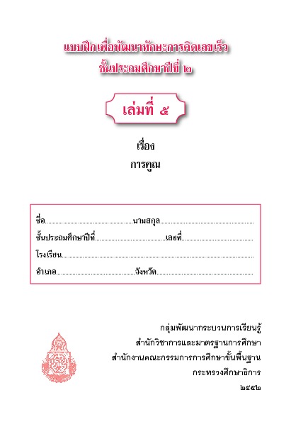 แบบฝึกเพื่อพัฒนาทักษะการคิดเลขเร็ว ชั้นประถมศึกษาปีที่ 2 เล่ม 5