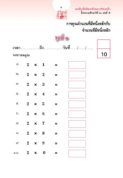 | คำสำคัญ : คณิตศาสตร์, พหุคูณของสิบ, การคูณหนึ่งหลัก, การคิดเลขเร็ว, ประถม2, การคูณ, การคูณสองหลัก |