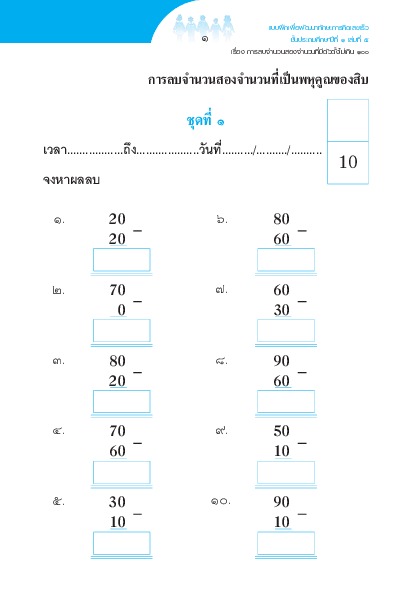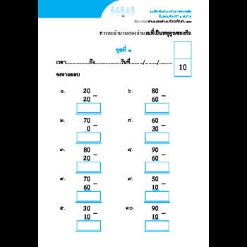 | คำสำคัญ : การลบสองหลัก, คณิตศาสตร์, พหุคูณของสิบ, การลบจำนวนสองจำนวน, การลบ, ประถม1, การคิดเลขเร็ว |