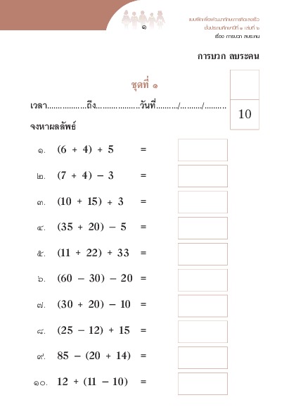 | คำสำคัญ : การคิดเลขเร็ว, ลบระคน, ประถม1, คณิตศาสตร์, การบวก |