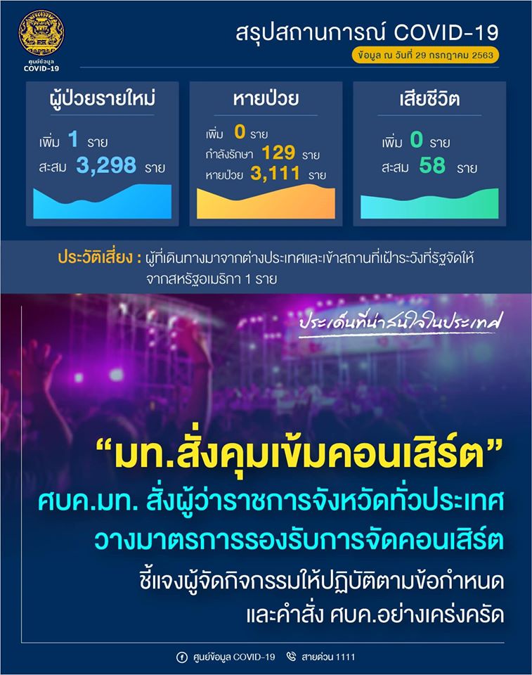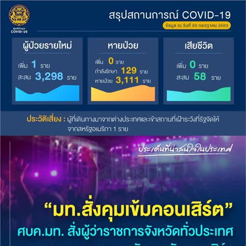 "สรุปสถานการณ์ COVID-19 ข้อมูล ณ วันที่ 29 กรกฎาคม 2563".