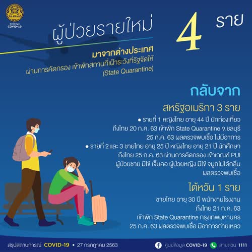 สรุปสถานการณ์ COVID-19 วันที่ 27 กรกฎาคม 2563