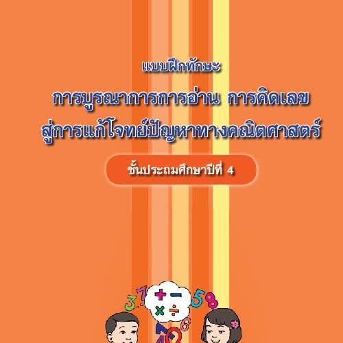 | ชื่อเรื่อง : แบบฝึกทักษะ การบูรณาการการอ่าน การคิดเลข สู่การแก้โจทย์ปัญหาทางคณิตศาสตร์ ชั้นประถมศึกษาปีที่ 4 ครึ่งแรก |