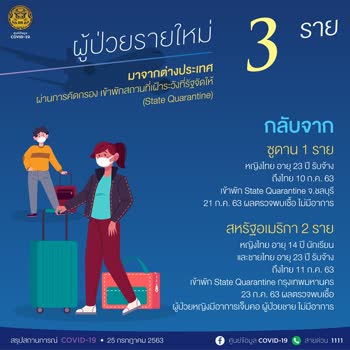 (2563). "สรุปสถานการณ์ COVID-19 วันที่ 25 กรกฎาคม 2563".